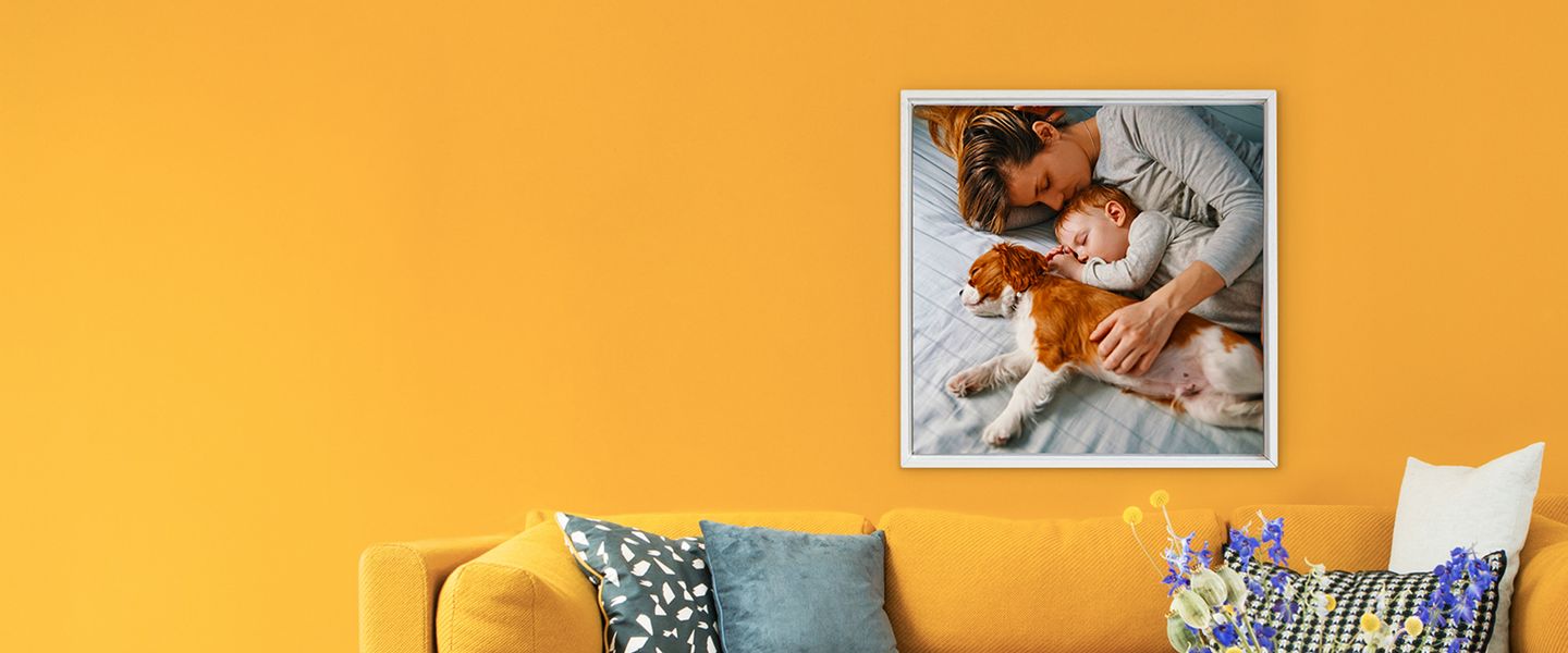 Je foto's worden haarscherp afgedrukt en handmatig opgerekt op een 2 cm dik frame, bestendig tegen kromtrekken en met geïntegreerd ophangsysteem.